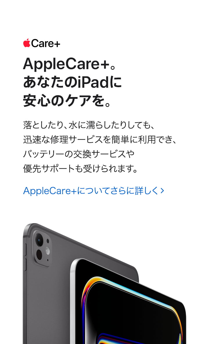 - AppleCare+ for iPadが安心をお届けします。