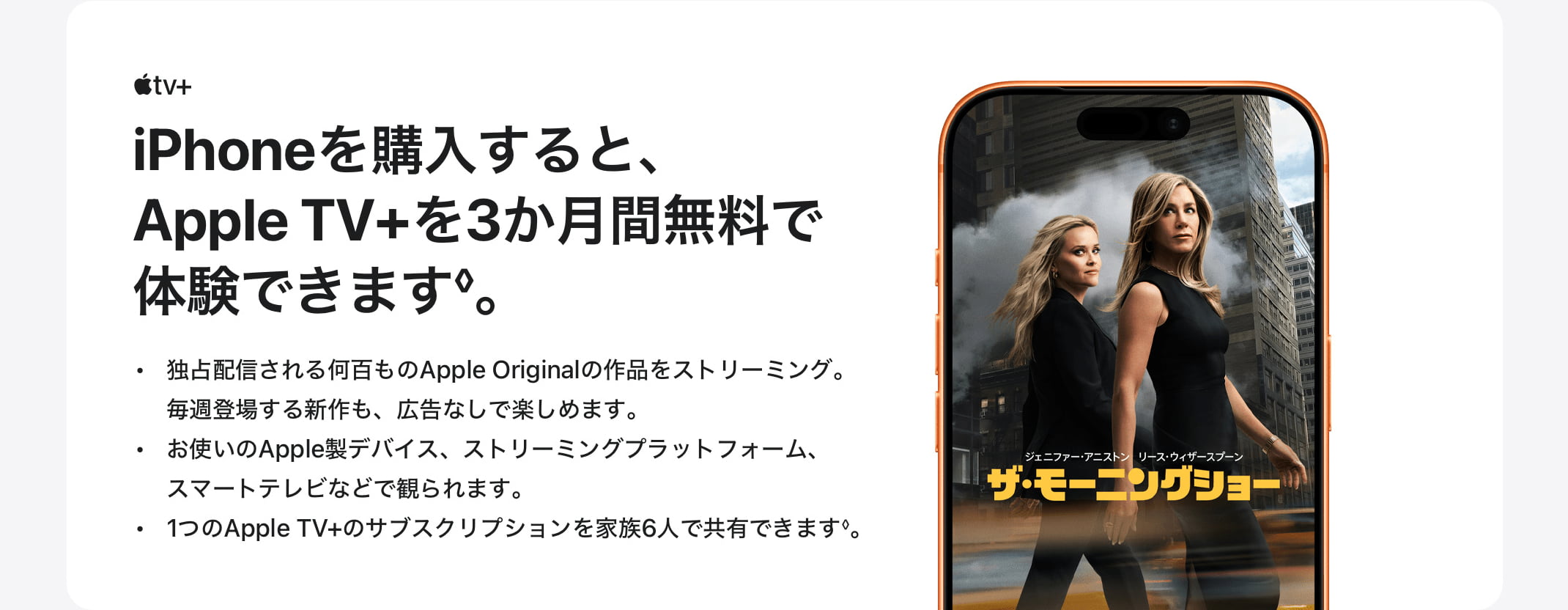 すべてのiPhoneには、製品購入後1年間のハードウェア製品限定保証と90日間の無償サポートがついています。保証とサポートが延長され、過失や事故による損傷に対する修理などのサービスを利用回数の制限なく受けられます。