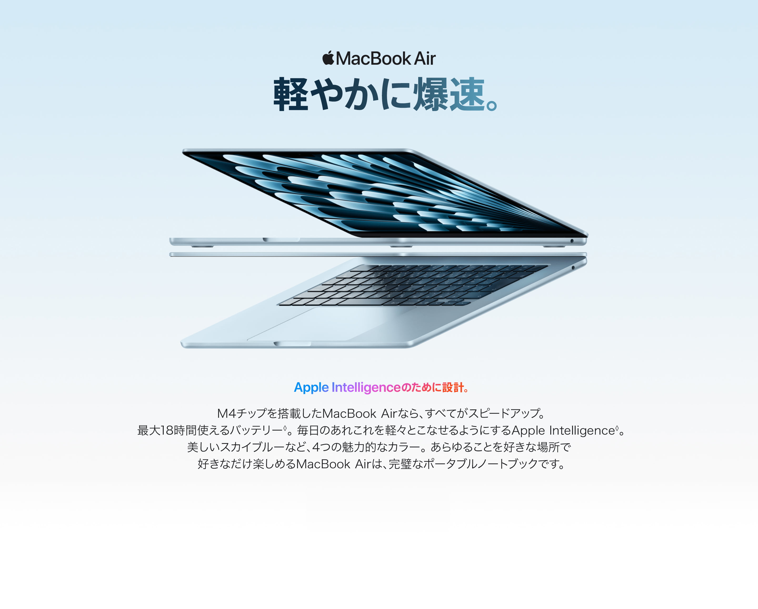 13インチMacBook Air: 10コアCPUと10コアGPUを搭載したApple M4チップ, 16GB, 512GB SSD - スカイブルー