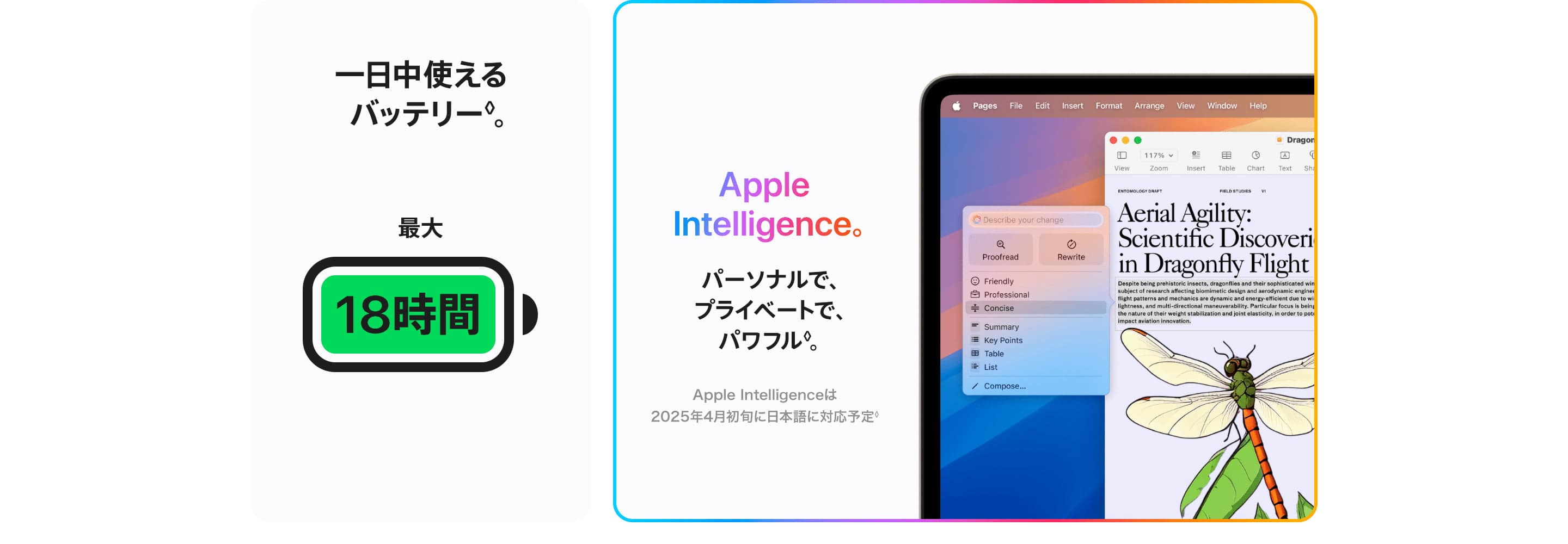 13インチMacBook Air: 10コアCPUと10コアGPUを搭載したApple M4チップ, 24GB, 512GB SSD - スカイブルー, Magic Keyboard(英語/US) with AppleCare+