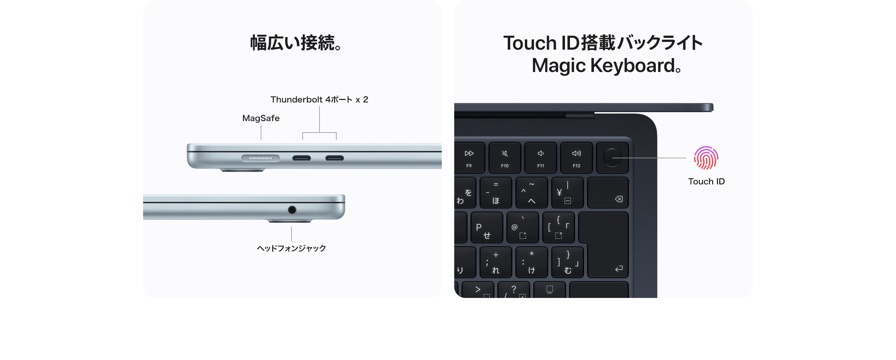 13インチMacBook Air: 10コアCPUと10コアGPUを搭載したApple M4チップ, 24GB, 2TB SSD - スカイブルー, Magic Keyboard(英語/US) with AppleCare+