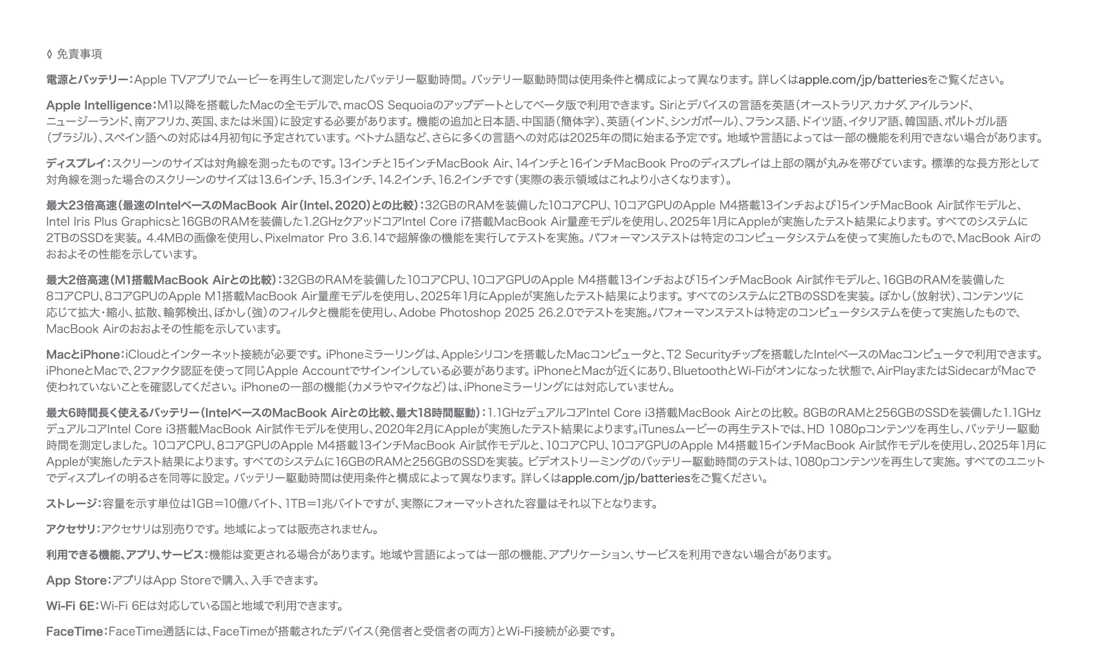 15インチMacBook Air: 10コアCPUと10コアGPUを搭載したApple M4チップ, 32GB, 2TB SSD - ミッドナイト