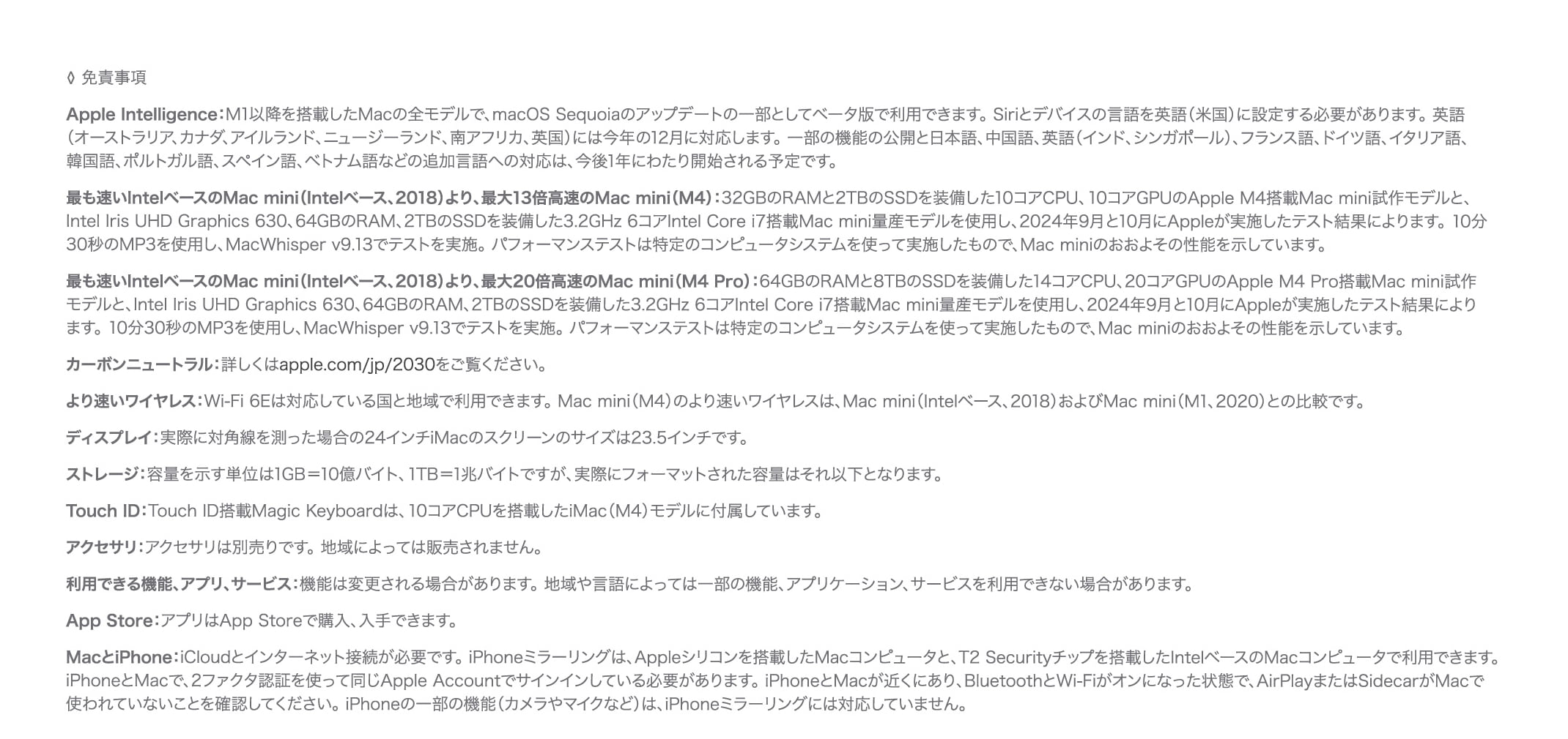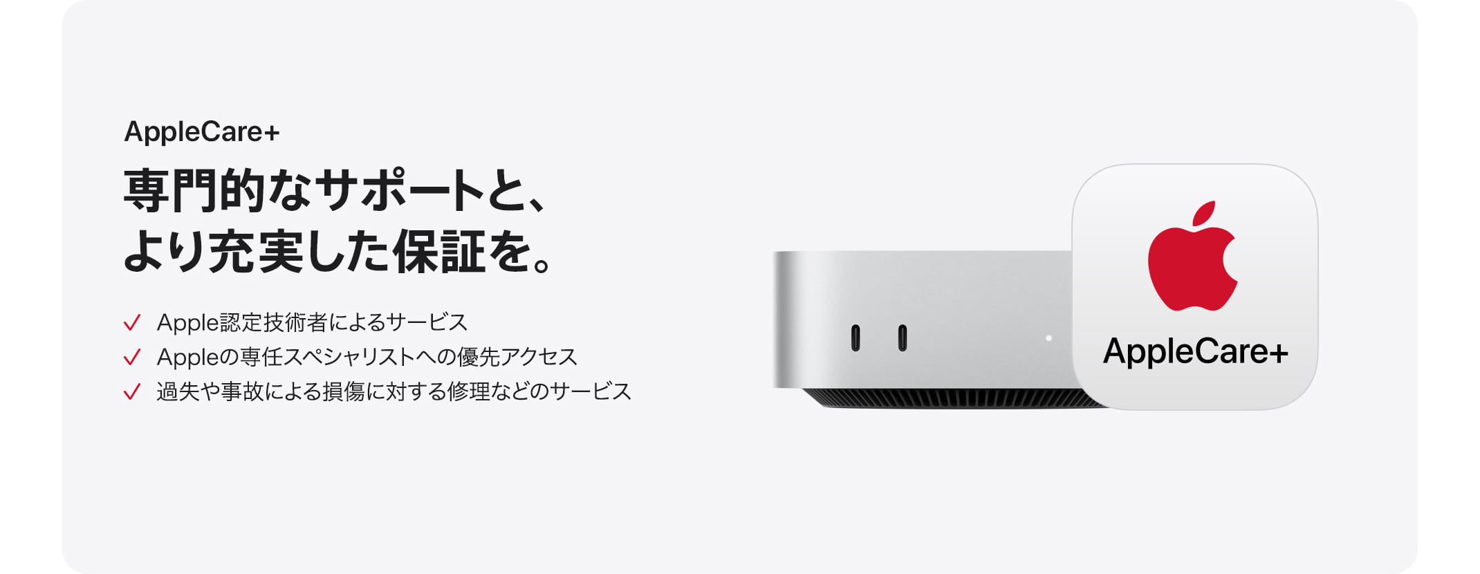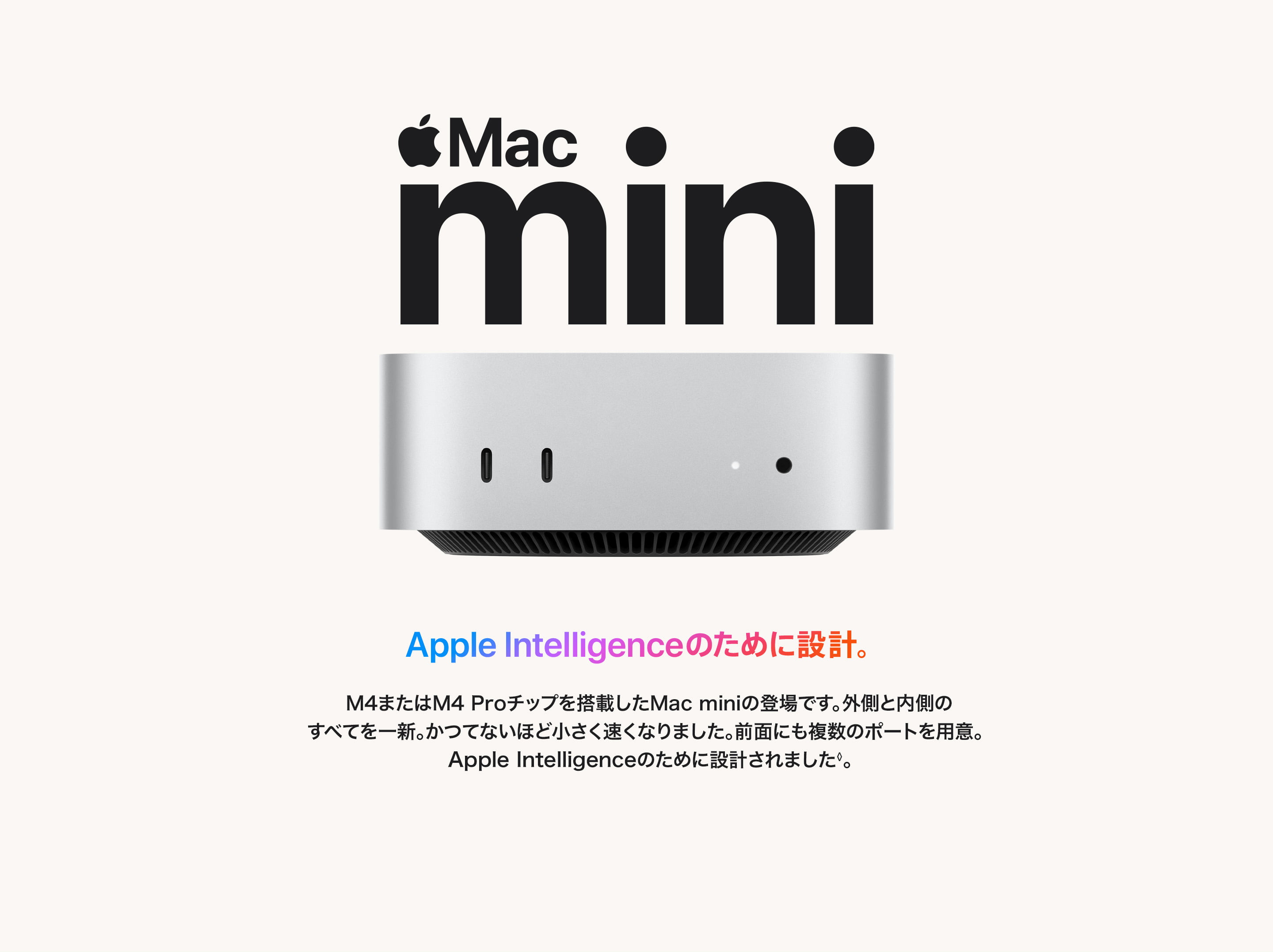 Mac mini: 10コアCPUと10コアGPUを搭載したApple M4チップ, 32GB, 2TB SSD with AppleCare+