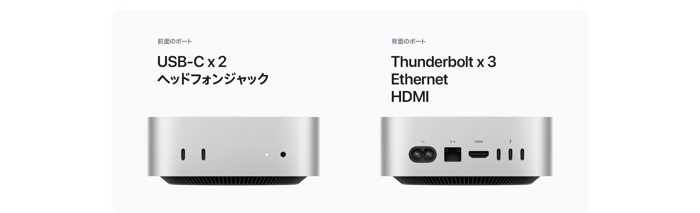 Mac mini, 10ギガビットEthernet: 12コアCPUと16コアGPUを搭載したApple M4 Proチップ, 24GB, 2TB SSD