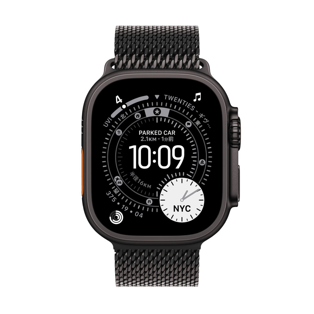 Apple Watch Ultra 3(GPS + Cellularモデル)- 49mmブラックチタニウムケースとブラックチタニウムミラネーゼループ - L