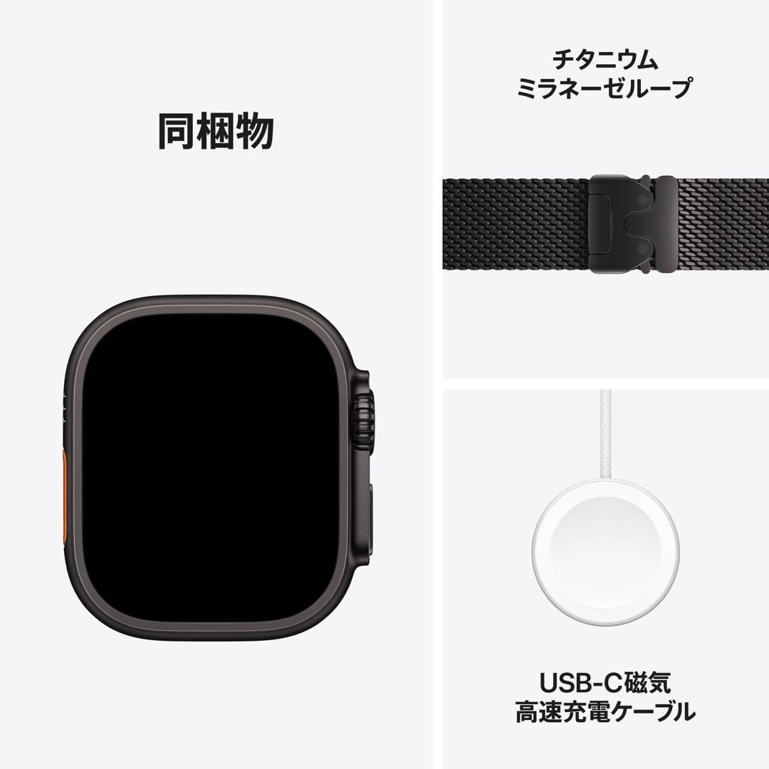 Apple Watch Ultra 3(GPS + Cellularモデル)- 49mmブラックチタニウムケースとブラックチタニウムミラネーゼループ - S with AppleCare+