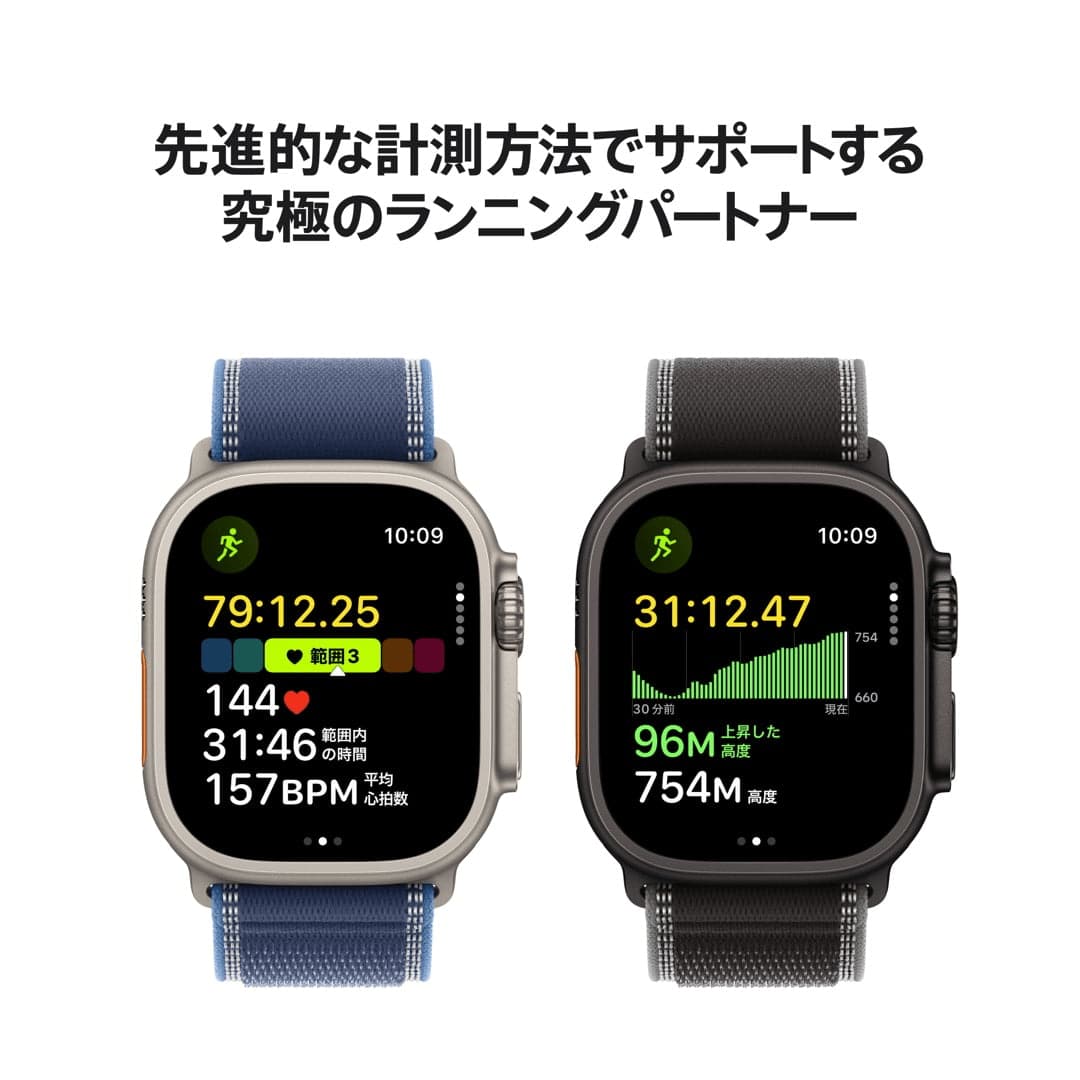 Apple Watch Ultra 3(GPS + Cellularモデル)- 49mmブラックチタニウムケースとブラック/チャコールトレイルループ - M/L