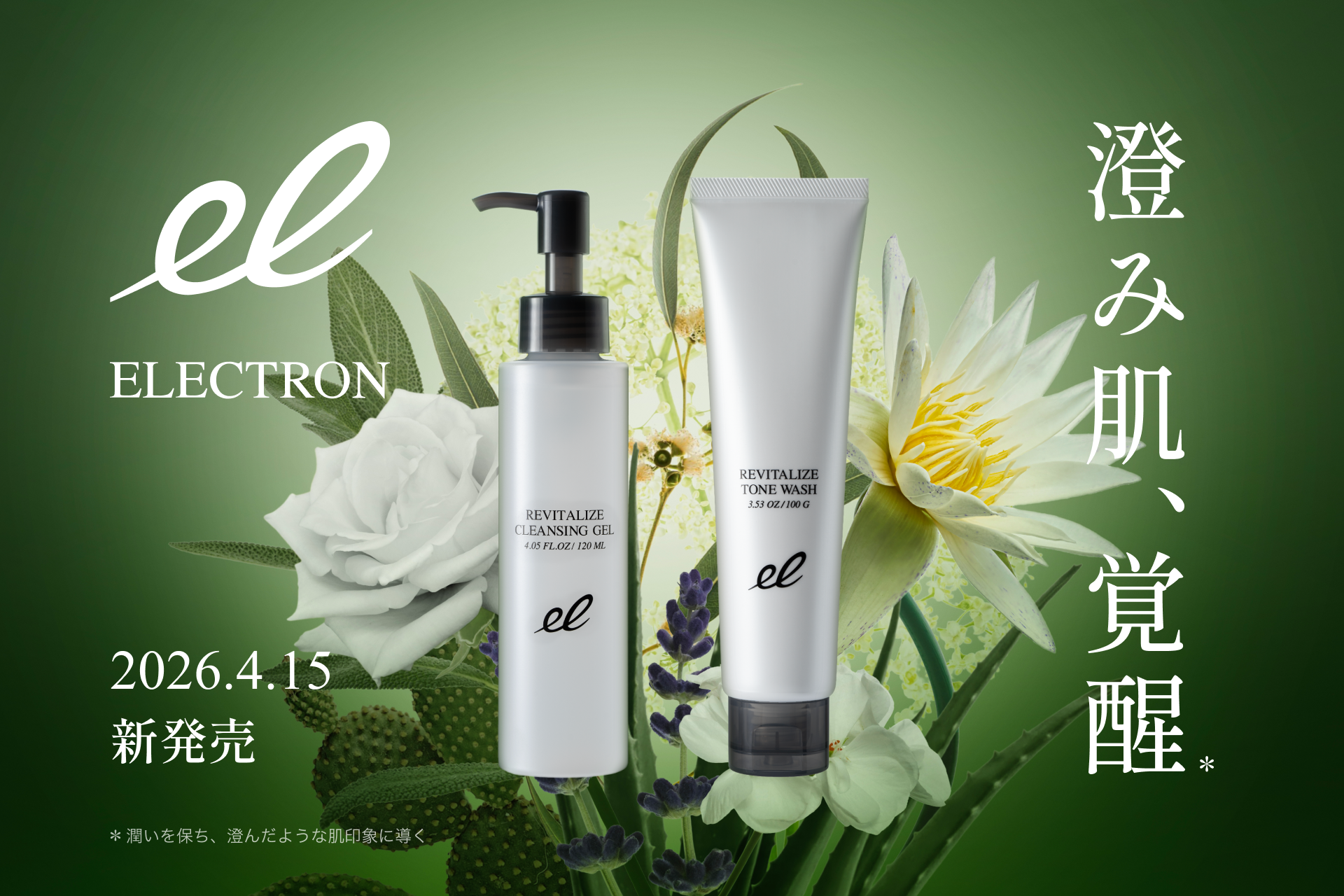独自の活性電子水をベースに、汚れや古い角質をやさしく落としながらうるおいを守る設計。クレンジングと洗顔それぞれの役割に着目したWステップで、心地よく洗い上げ、なめらかな肌へ整えます。